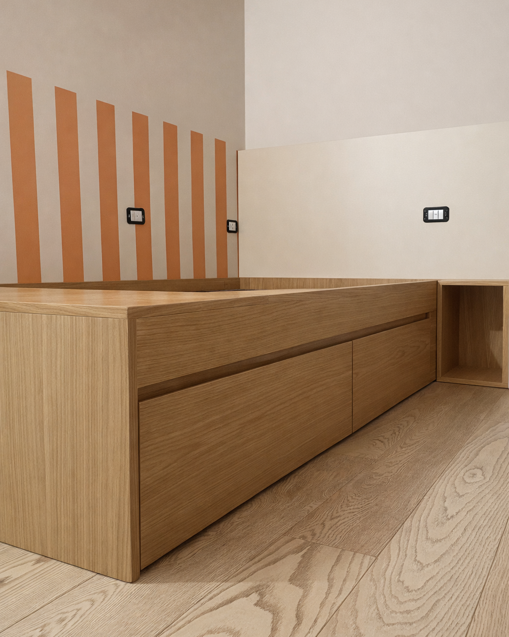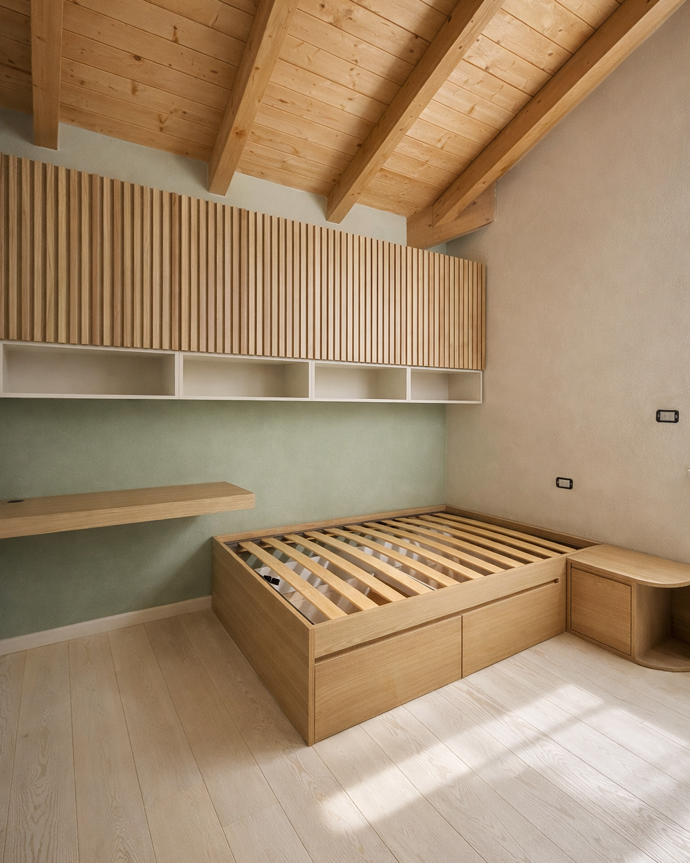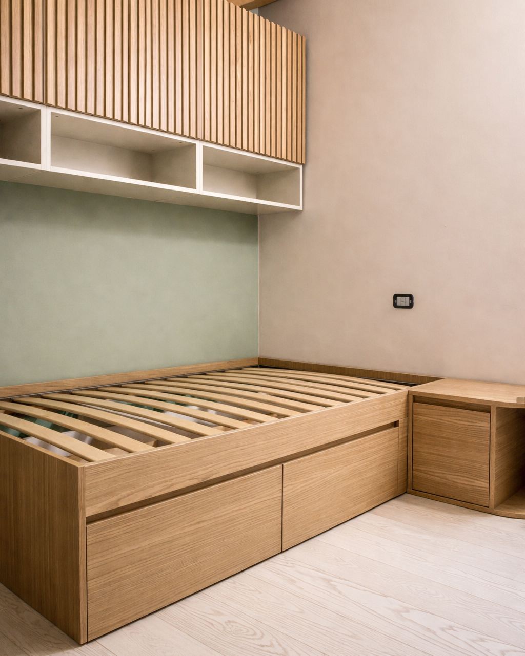 - Letto contenitore integrato in rovere