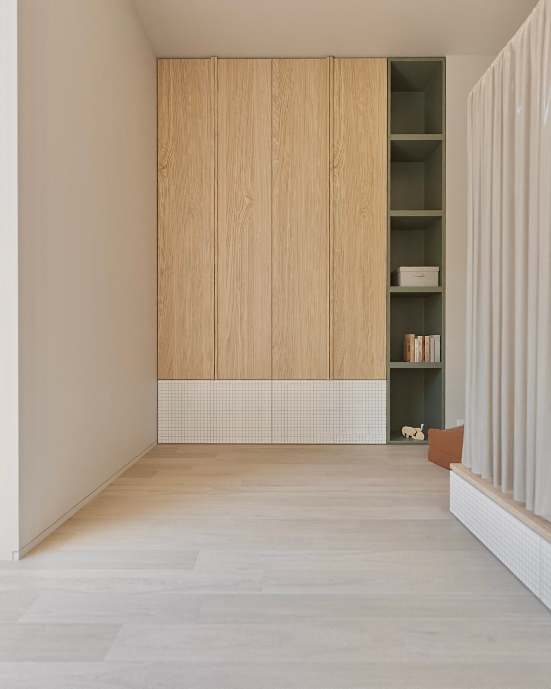 La moodboard è costruita su una palette calda e avvolgente: toni sabbia, biscotto e terracotta, bilanciati da neutri lattiginosi che amplificano la luce e restituiscono quella sensazione tipica delle case al mare.